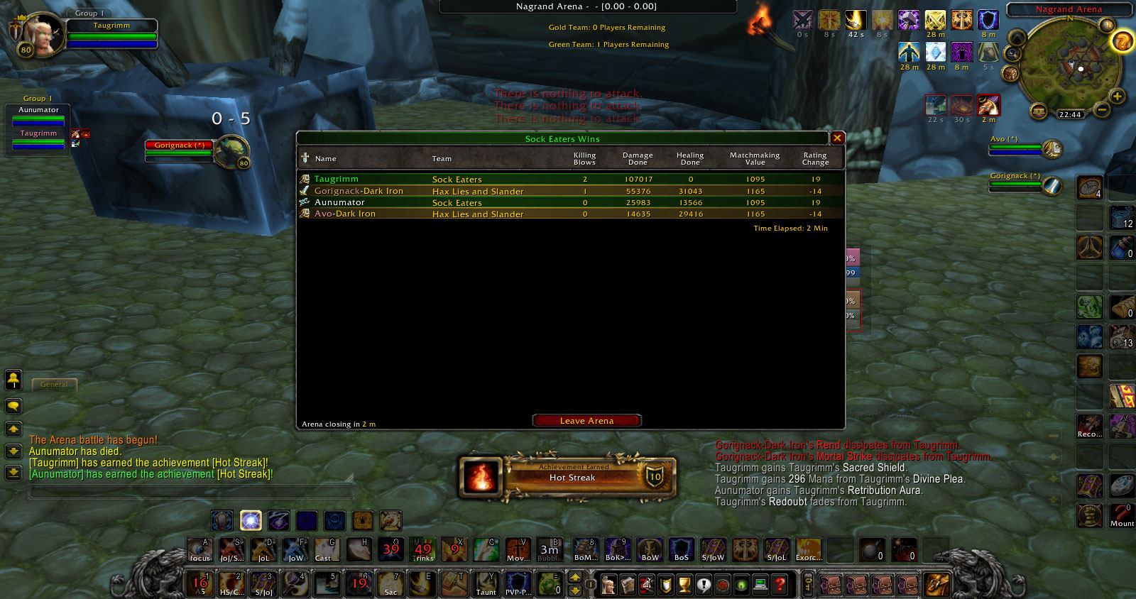 - me + Shadow Priest: functional comp, we are able to take healer/DPS comps. The Shadow Priest still has some honor point upgrades to buy and was using a PVE spec, but we won 13 out of 15 matches and earned the 10 consecutive win Hot Streak achievement: